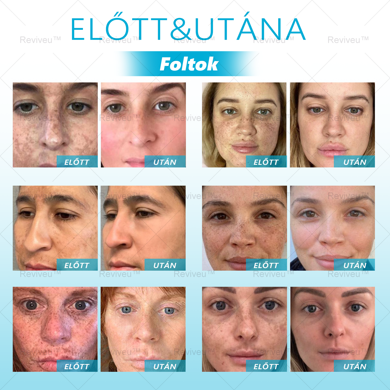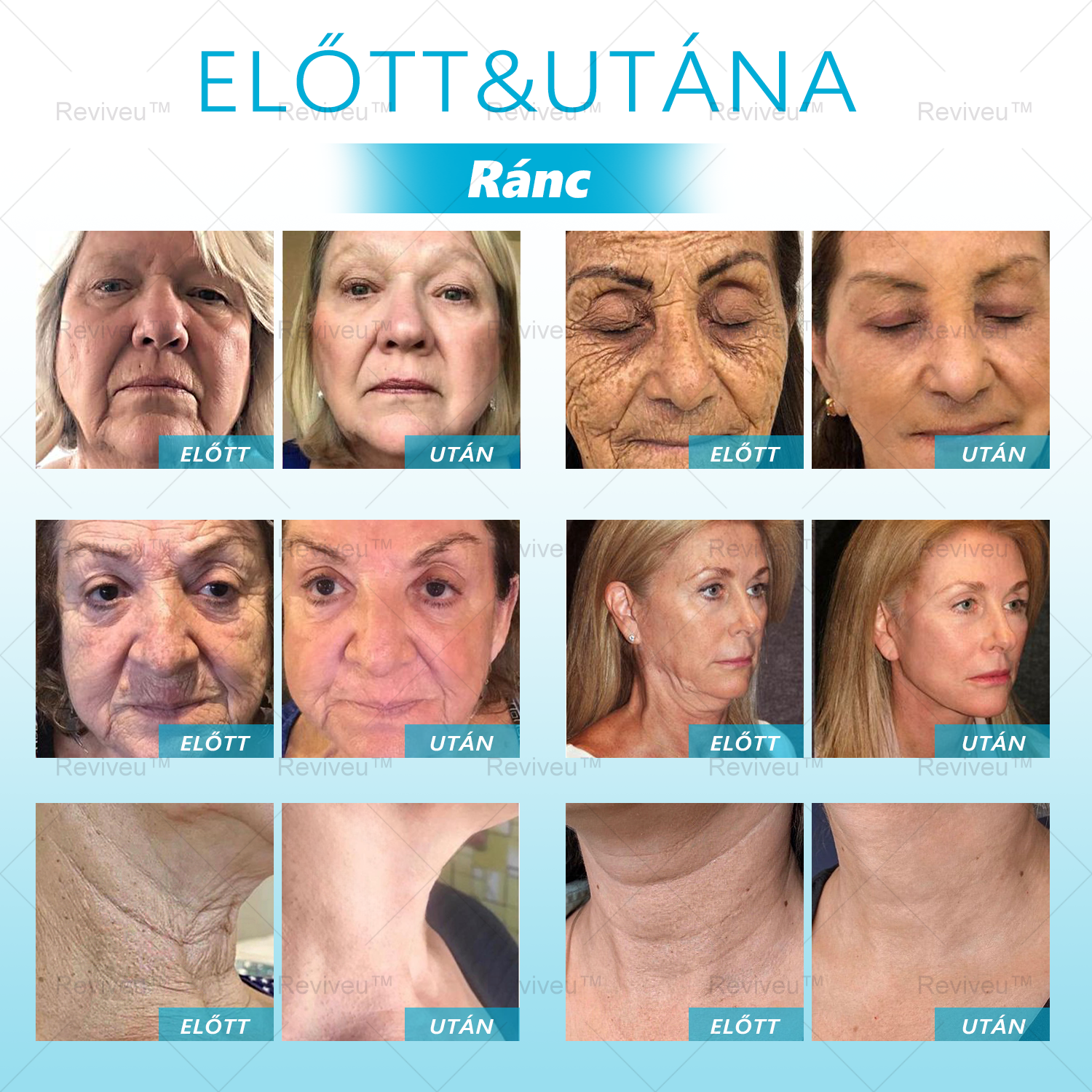 "Egy héttel ezelőtt kezdtem el használni a Reviveu™-t, és amikor megláttam az összehasonlító képet, egyszerűen elképedtem! A szemem körüli és az ajkaim körüli finom ráncok jelentősen csökkentek, a bőröm ragyogása és feszessége jelentősen javult, és a bőrszínem sokkal egyenletesebbé vált. A legnagyobb meglepetésemre a bőröm rugalmassága is látványosan javult, úgy érzem, mintha visszanyertem volna a fiatalos kinézetet. A bőröm rózsás és ragyogó lett, tele kollagénnel, az arcom egészségesebbnek és feszesebbnek tűnik! Az eredmények ilyen szembetűnőek, hogy már három üveggel rendeltem, és folytatni fogom a napi használatot. Erősen ajánlom mindenkinek, aki szeretné javítani a bőrének állapotát!"